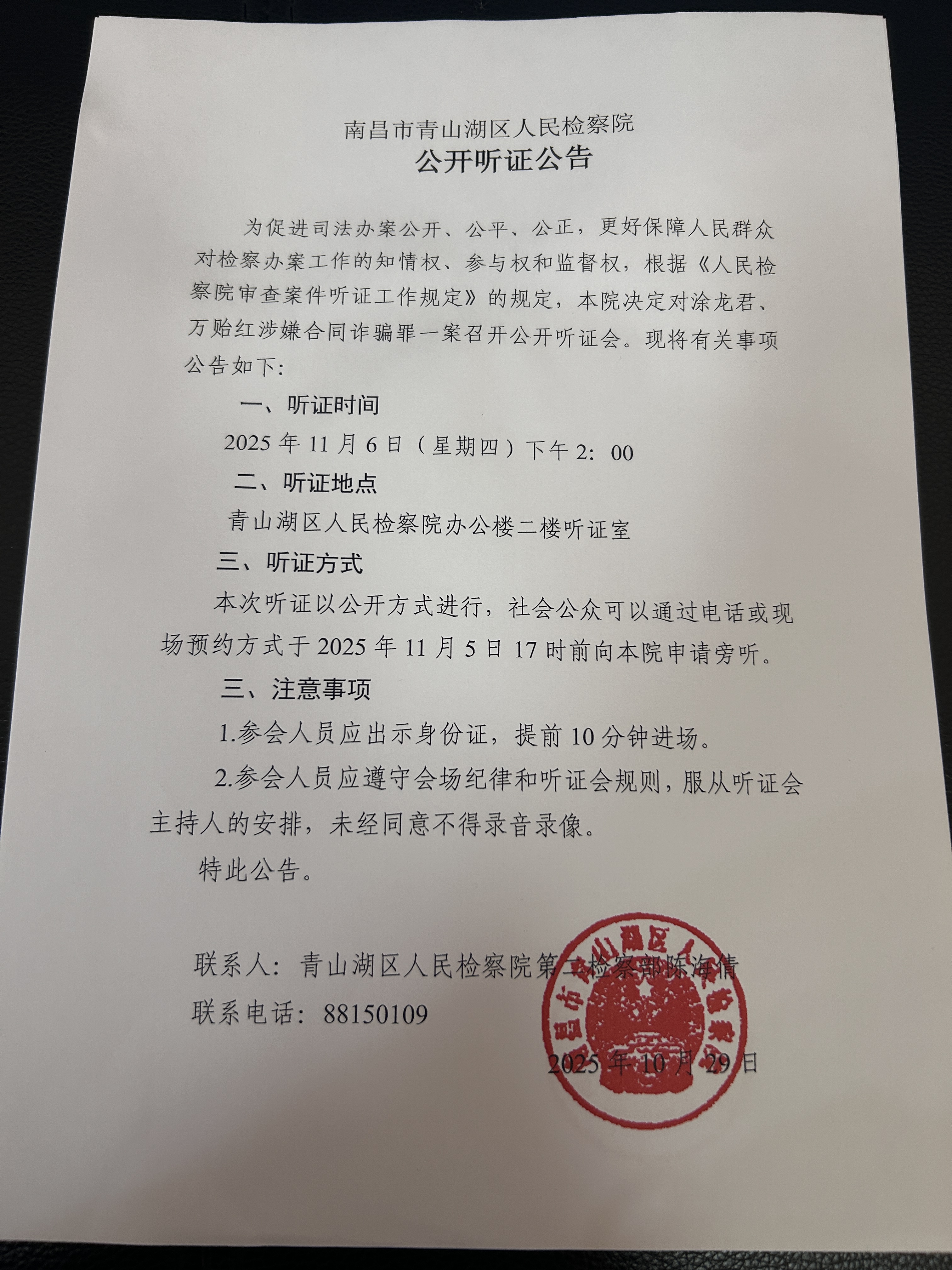 · 【控申检察为民办实事】青山湖区检察院“检察长接访日”11月接访安排公告